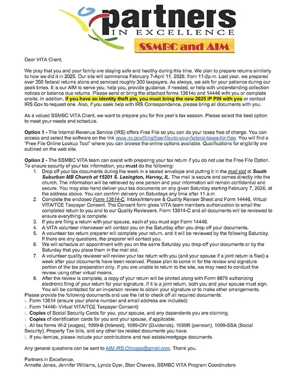 LOCATION: South Suburban Missionary Baptist Church • 15201 S. Lexington • Harvey, Illinois 60426